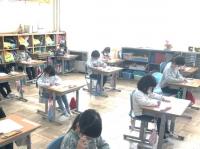 今日と明日の2日間は学力テスト実施期間としています。今日は国語と理科、明日は算数です。1年間の学習がどの程度定着していたのか、一人一人の指標となります。1年生は初めての学力テスト、6年生は小学校の集大成としての学力テスト、それぞれの学年で真剣に取り組んでいました。