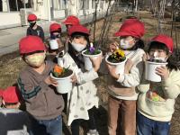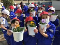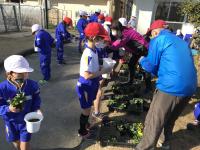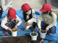 今日は1年生が一人一鉢の花づくりをしていました。先生のお話をしっかりと聞いて、土を入れたり、花を選んだりして、自分だけのすてきな鉢花ができました。子ども達は、とても満足そうでした。