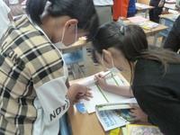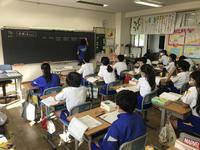 6年1組が、算数「拡大図と縮図」、6年2組が、国語「やまなし」の学習をしていました。算数では、実際の長さを導き出し、縮尺をどのように説明したらよいかみんなで考えていました。国語では、宮沢賢治の作品「やまなし」の五月の場面を読み取っていました。かにの兄弟や場面の様子など特徴的な言葉を見つけながら、ノートに整理していました。どちらも難しいところの学習ですが、真剣に考える姿が印象的でした。