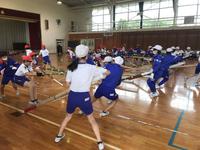 今日は台風が接近していましたが、雨も風もあまり強くなく安全に登校できました。でも、時折降ってくる雨のため、どの学年も運動会の練習を体育館で行っていました。