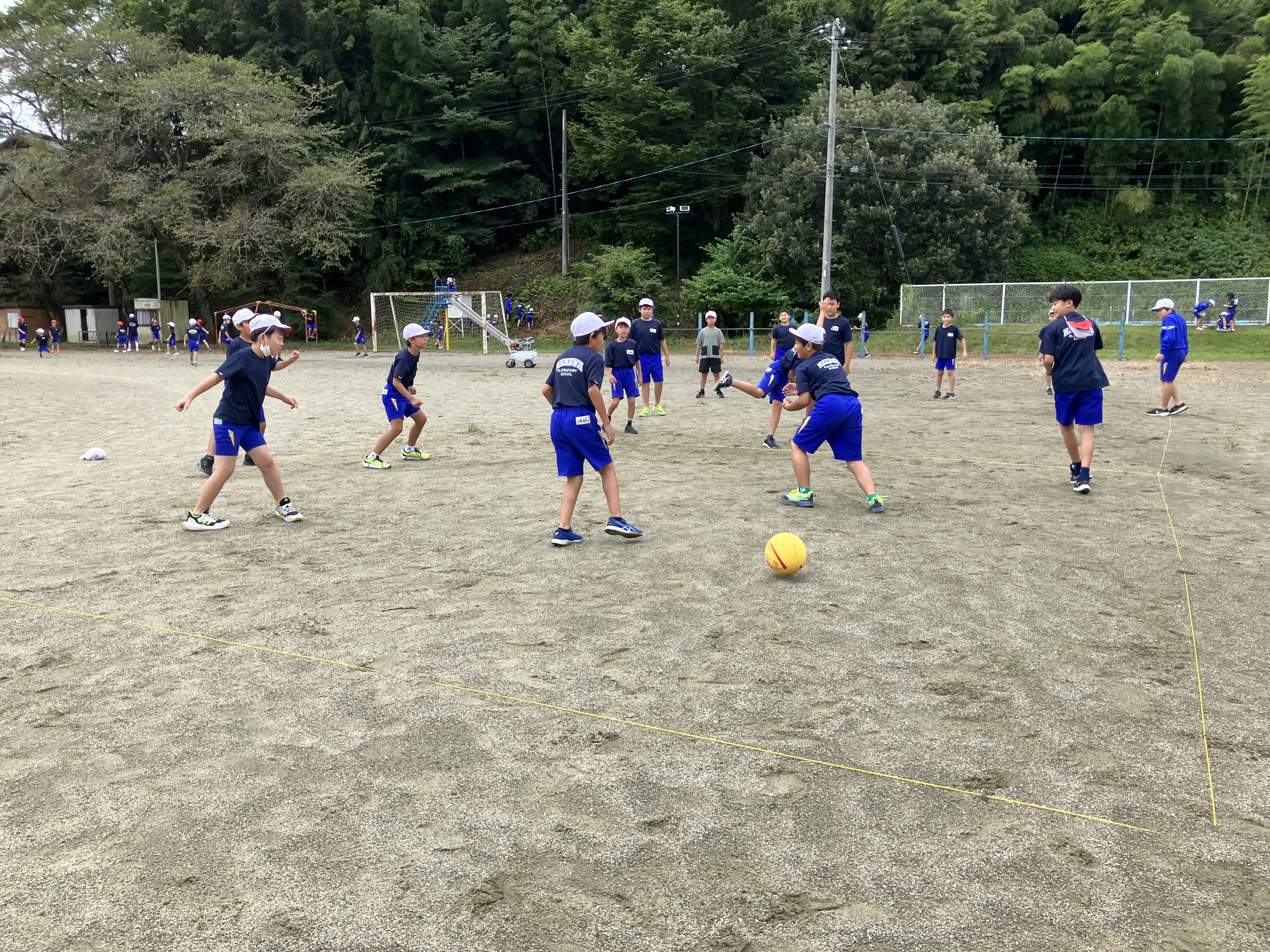 学年全体に2人の先生がついて勉強しています。これもチーム担任制のよさです。今日は中学生先生も手伝ってくれています。