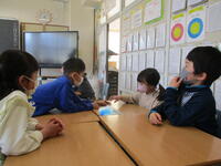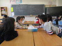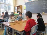 ソーシャルスキル・トレーニング(SST)とは、人と人とが社会の中で関わりながら生きていくために欠かせないスキルを身につける訓練のことです。あいさつ、言葉かけ、判断することなど家庭でも行っていると思いますが、本校では、スキルを身につける時間として年間8回位置付けています。今日が今年度最後でした。1年1組をのぞいてみると、「サイコロトーク」をしていました。出た目に沿ってテーマがあり、そのテーマについて話します。1年生なりに、相手の目を見て、真剣に話をしていました。周りの子どもたちも、うなずきながら、本気になって聞いていました。こういうところに、子どもの成長を感じます。