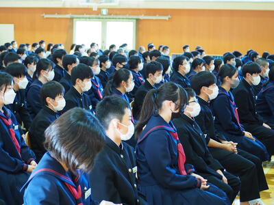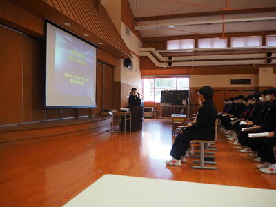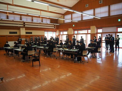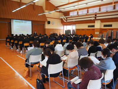 本日、3年生とその保護者を対象に入試説明会が開かれました。公立高校・私立高校の入試事務の進め方について進路指導主事から丁寧に説明がありました。いよいよ受験シーズンの到来です。