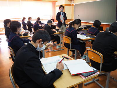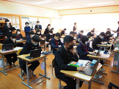 11月1日(火)、3年2組で社会科の研究授業がありました。これは、東西しらかわ中学校教育研究協議会主催の研修会で、県南地区の中学校の社会科の先生方がたくさん集まりました。そんな中、3年2組の生徒たちは立派な態度で授業に臨んでいました。