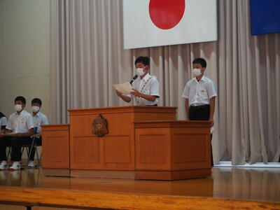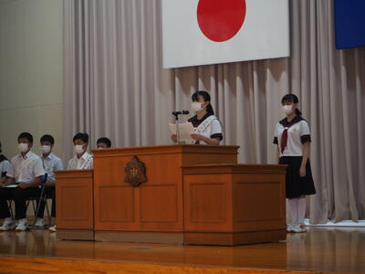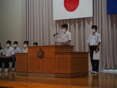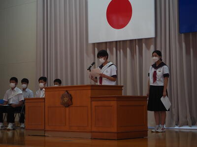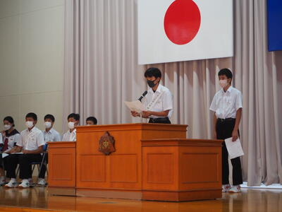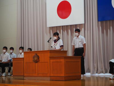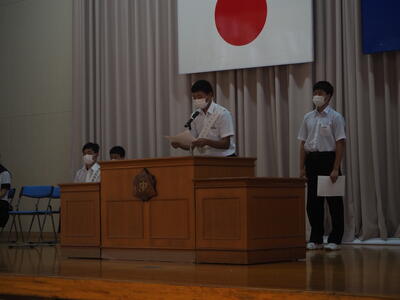 今日、生徒会役員選挙の立会演説会が開かれ、7名の立候補者がそれぞれ責任者と共に演説を行いました。また、今回は定数内であったため投票は行われませんでした。
