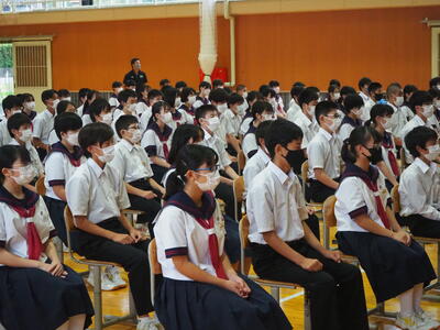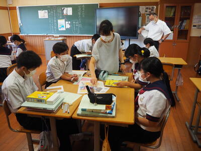 今日、1年2組で国語の研究授業がありました。古典、竹取物語の「蓬莱の玉の枝」を読み、登場人物の関係や思いに着目して、物語の世界を想像することをねらいとする授業でした。みんな一生懸命に授業に取り組みました。