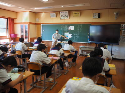 2022年10月26日 12時34分本日、2年3組で数学の研究授業がありました。身の回りにある問題から一次関数について理解を深めました。