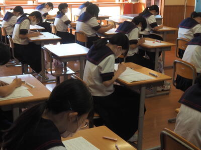 今日、明日と第2学期の中間テストが実施されています。みんな頑張っています。