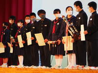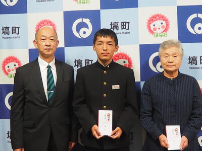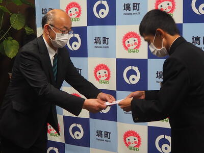 10月17日(月)役場において全国大会出場選手激励金交付式があり、本校の小松翔君が参加しました。小松君は10月21日から愛媛県松山市で開かれるJOCジュニアオリンピックに三段跳で出場します。(9月の県予選会で優勝)※ねんりんピックかながわ2022に出場される横田愛子様が同日の交付式に参加されました。