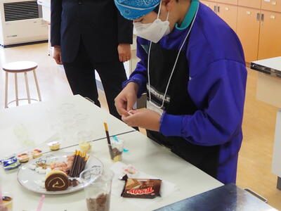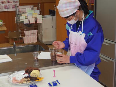 本日、3,4校時目に6組と7組の交流会が開催されました。市販のお菓子を使ってパフェづくりをしました。工夫がいっぱい詰まったおいしそうなパフェが完成しました。作ったパフェは会に参加した先生方と一緒においしく食べました。
