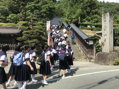 急な階段を延々と登り続け、やっとの思いで戻ってきました。我々教師はへとへと、子どもたちは元気いっぱいでした。松尾芭蕉の気持ちに近づくのは難しかったです。