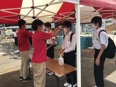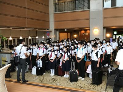 今夜の宿泊先となる大観荘に到着。バスを降りる際にホテルの方に検温してもらいました。体調不良を訴える生徒もなく、それぞれの部屋に入っていきました。