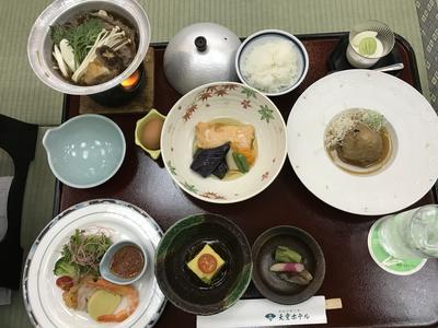 天童ホテルに到着してここでもホテルの方に検温してもらい部屋へ。18時からの夕食もおかわり続出でボリュームたっぷりの豪華な料理をいただきました。山寺の疲れで今夜も爆睡間違いなし。多分。