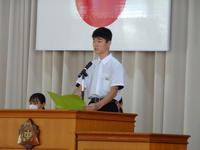 例年より短い夏休みが終わり、8月19日(水)に2学期が始まりました。始業式では、各学年の代表生徒と生徒会代表生徒が、2学期の抱負をしっかりと発表できました。1学年代表は原瑚采夏さん、2学年代表は鈴木風雅君、3学年代表は鈴木七海さん、生徒会代表は石黒琳音さんです。自分の課題を克服すること、そしてさらに成長するために努力することを、具体的に述べていました。2学期の飛躍が楽しみです。