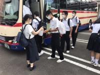 8時45分、予定より少し早めに、3年生62名全員で学校を出発しました。感染症対策をしながら楽しい3日間になることを期待したいです。行ってまいります。