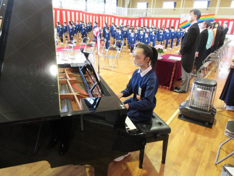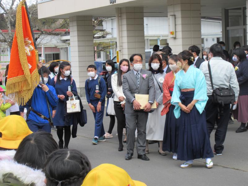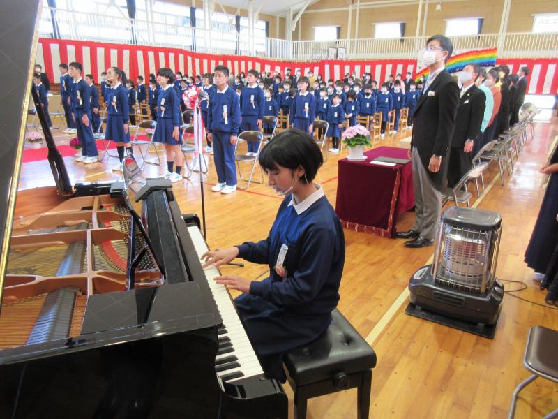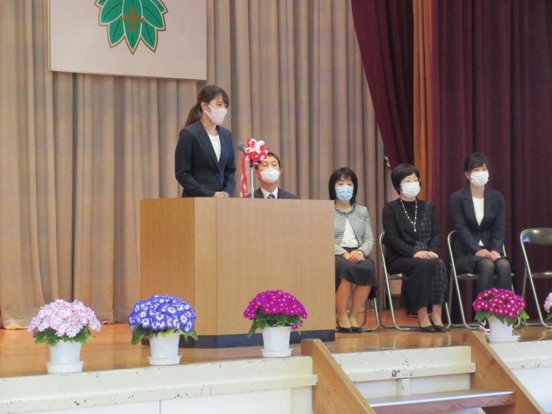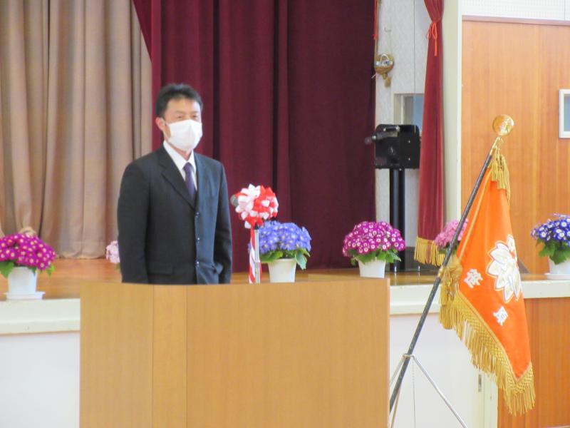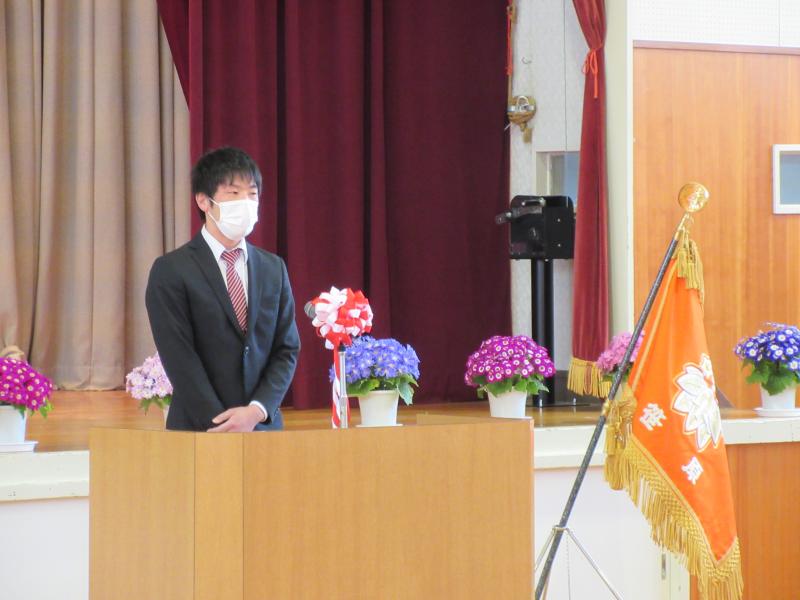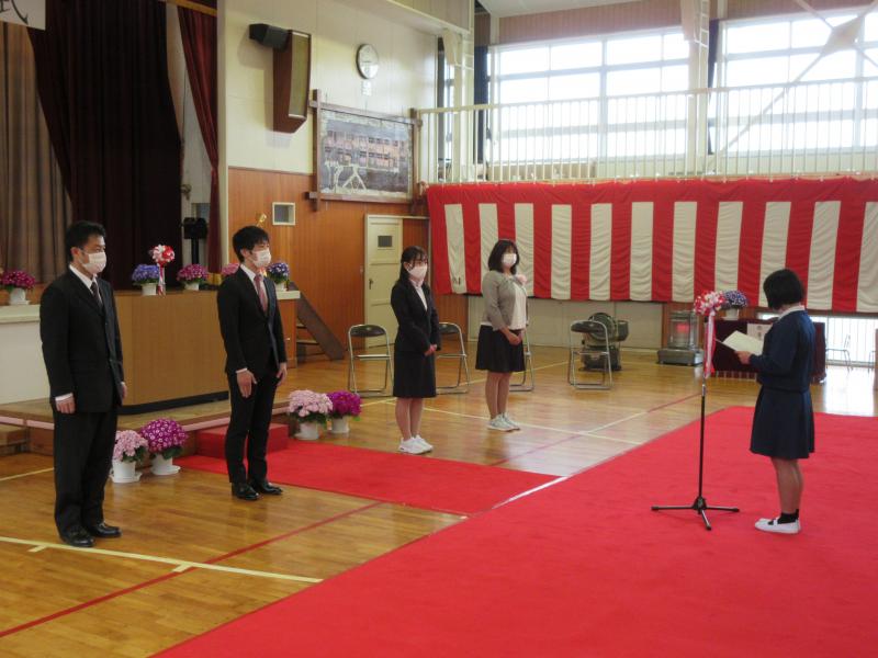 令和3年度がスタートしました。本校に着任にした先生方をお迎えしました。6年生の長嶋椛恋さんが児童代表の言葉を述べました。