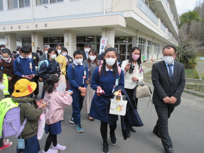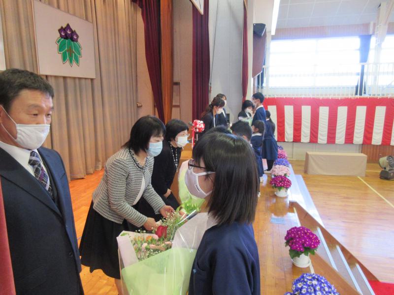 令和2年度卒業証書授与式があり、16人の卒業生が巣立っていきました。コロナ禍の中、開催規模を縮小しての開催でしたが、卒業生、在校生とも立派な態度で臨み、とても素敵な式となりました。ご多用の中、ご来賓の皆様、保護者の皆様、ご臨席を賜りましてありがとうございました。卒業生のみなさん、中学校での活躍を期待しています。