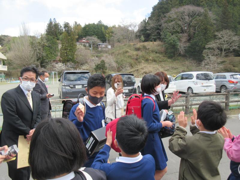 離任式が行われました。式では、転出、退職者を紹介し、転出、退職者一人ひとりから子どもたちの別れの言葉を述べ、児童代表の5年神永琉璃さんが感謝の言葉を贈りました。式後、全児童で6名の先生方を拍手でお送りしました。6名の先生方、今まで本当にお世話になりました。ありがとうございました。新天地でも頑張ってください。