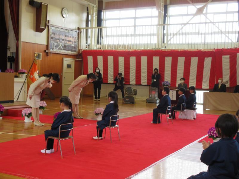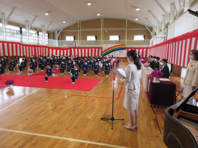 今年度は、5名が入学しました。呼名された時に元気よく返事をすることができました。お話を聞く態度もとても立派でした。6年生の鈴木海晴さんが歓迎の言葉を述べました。令和3年度初日、よいスタートをきりました。