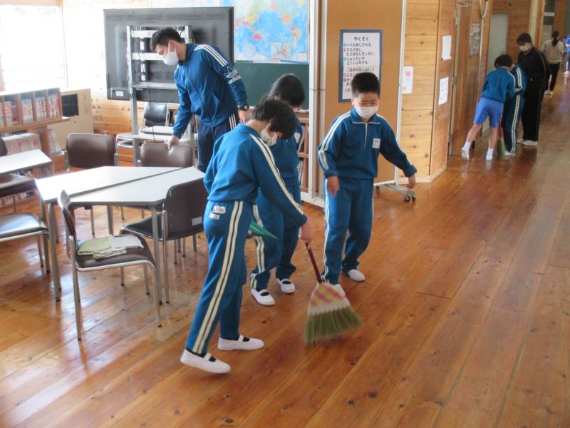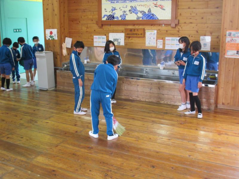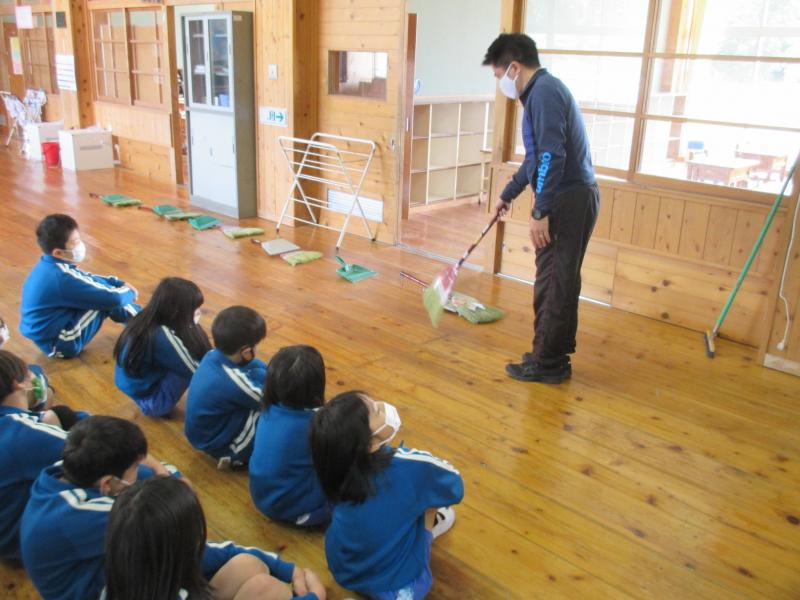 2校時目の休み時間に、清掃指導を行いました。ねらいは「清掃の方法を学び、自分たちの学校をきれいにしようとする態度を育てる」です。下学年は雑巾のかけ方を、中学年は掃き掃除の仕方を、高学年は班長・副班長の役割等を確認しました。新しい縦割り班は、新1年生が加わり、縦割り班のメンバーも変わり、新班長にもなりました。縦割り班で協力し合いながら、木のぬくもりが感じられる校舎内をきれいにしていきましょうね。