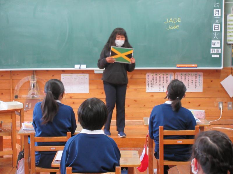 4月から、ジャマイカ出身のジェイド先生との英語の学習がスタートしました。ジェイド先生の自己紹介やジャマイカの国について、楽しく教えていただきました。ジェイド先生と新しい文化との出会いに、子ども達も興味津々でした。