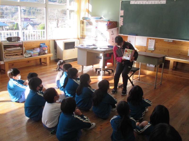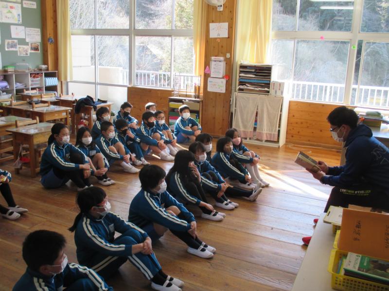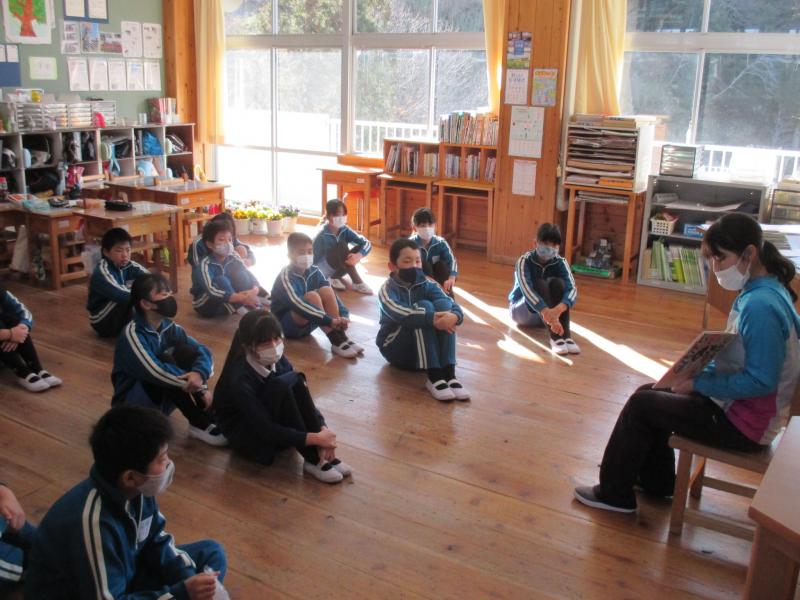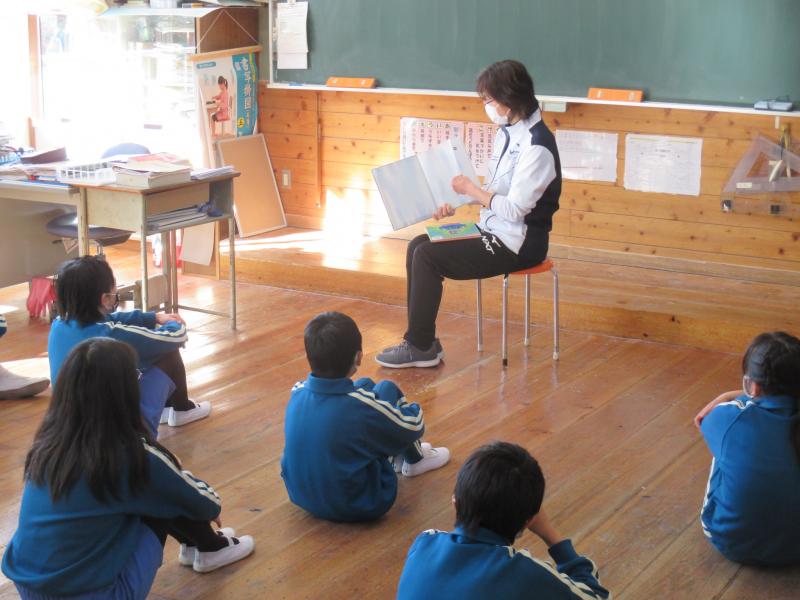 朝の時間に「読み聞かせ」がありました。今日は、1年生に6年担任、2年生に1年担任、3年生に5年担任、4年生に3年担任、5年生に2年担任、6年生に4年担任が担当しました。月に一度ではありますが、子どもたちは、担任以外の先生の読み聞かせを楽しみにしています。1年生の子どもたちの笑顔がとても素敵です。