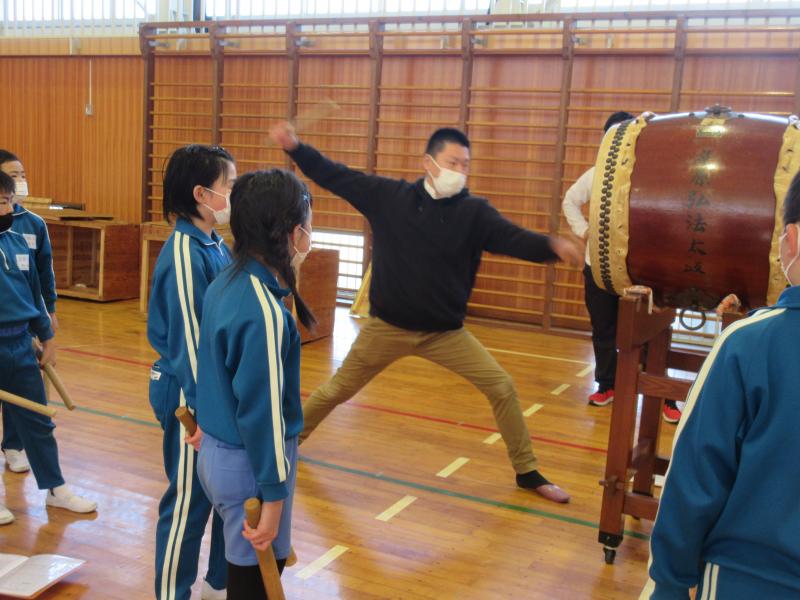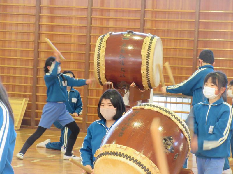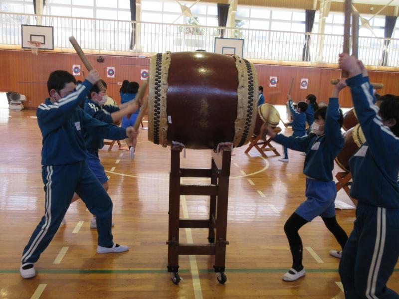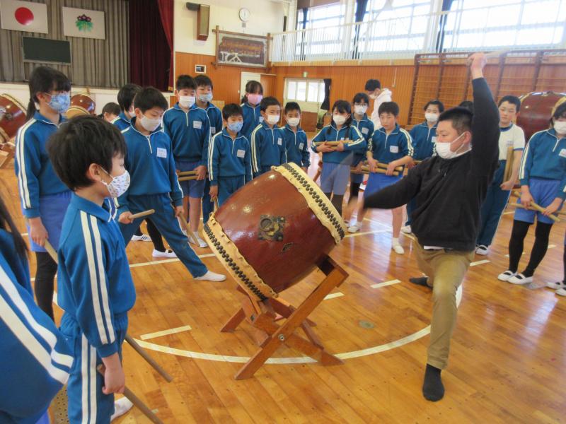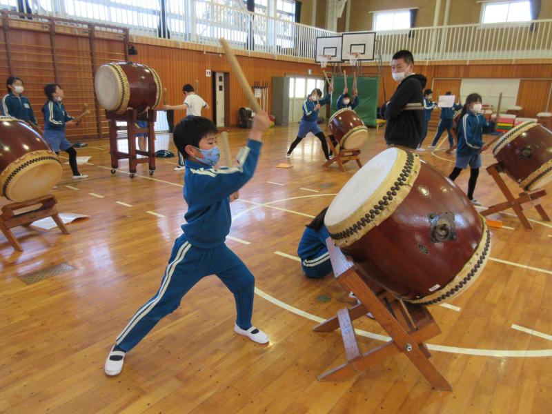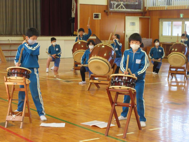 外部講師(太鼓)の伊藤敦先生から、川上太鼓の指導を受けました。4・5年生は、始め緊張した様子でしたが、一人ひとりが真剣に取り組み、徐々に練習に成果が表れてきました。4年生も自信がついてきたようです。先生からいただいた指導をもとに、練習を重ね、立派な演奏ができるようにしていきます。しっかり伝統を引き継いでいきます。