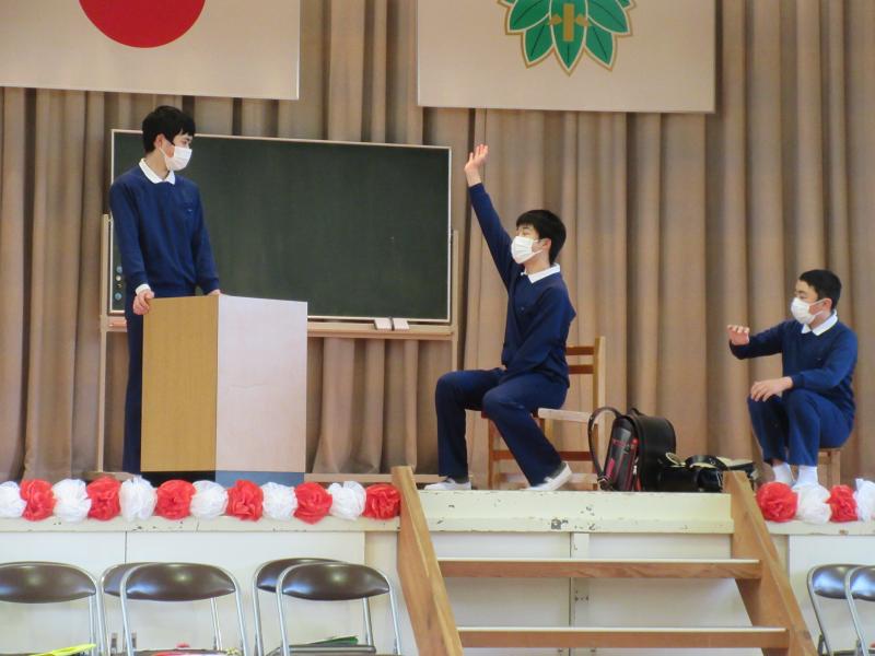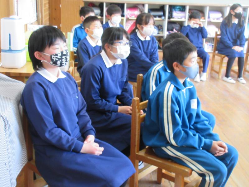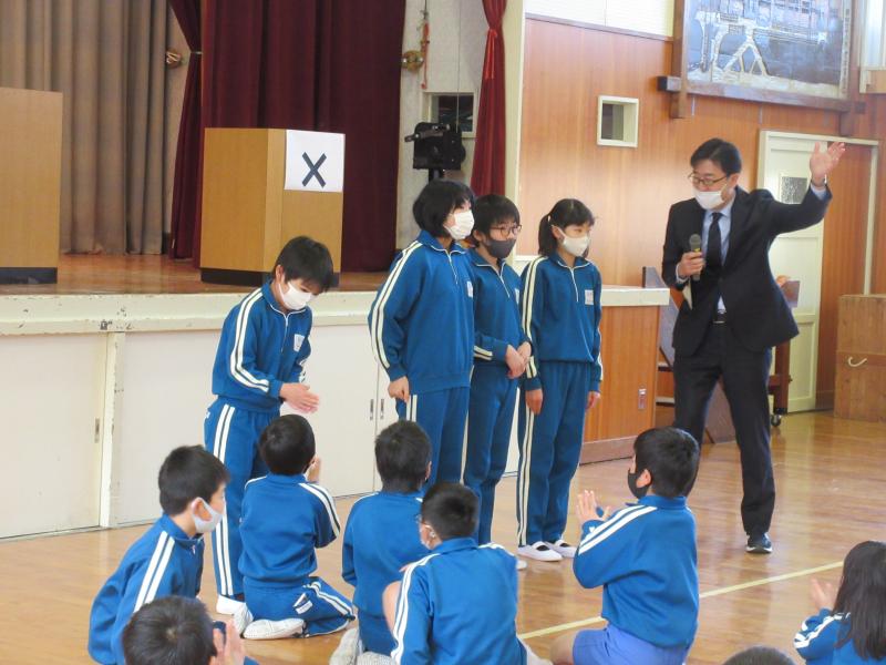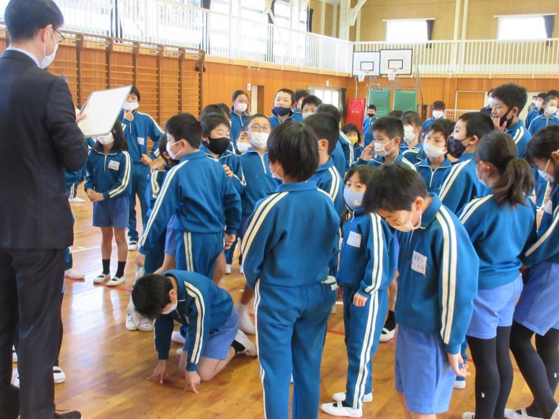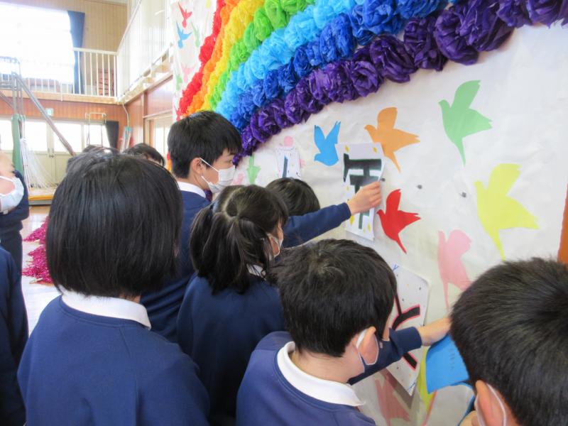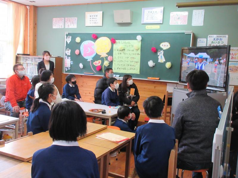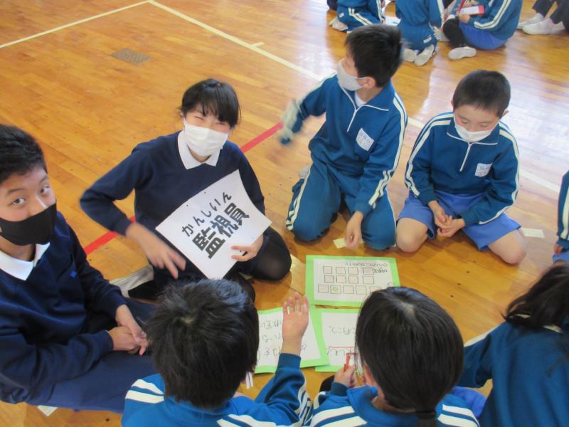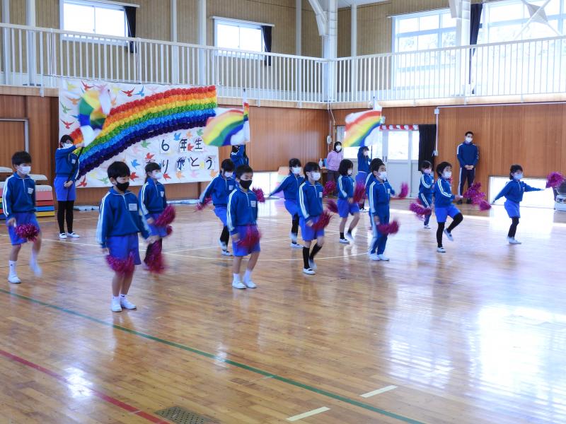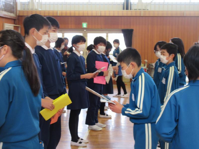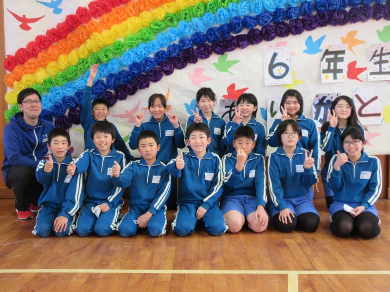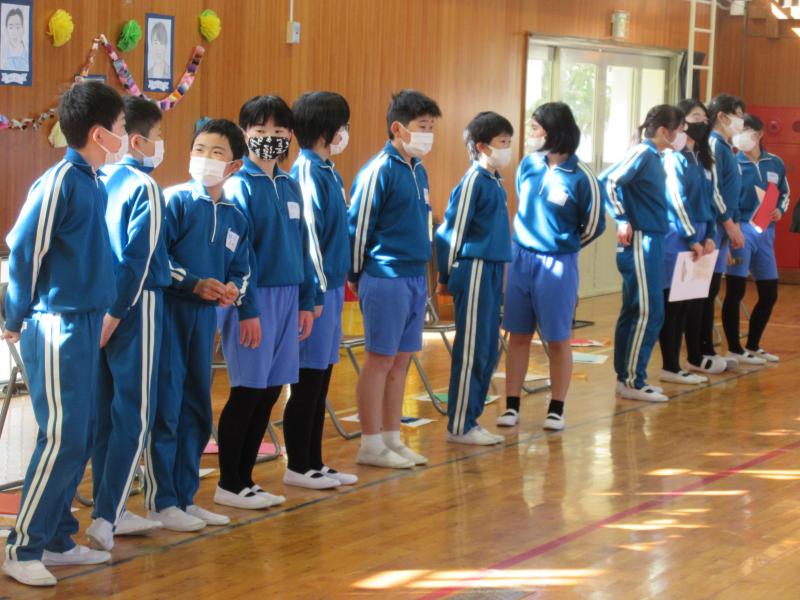 今までお世話になった6年生に感謝の気持ちを込めて、「6年生を送る会」を行いました。5年生が企画運営をしました。その企画では、4年生が6年生の似顔絵を描き、3年生は看板を作り、1・2年生は紙花を作り、5年生は大きなメッセージボードを作り、それぞれの学年で会場を作るというもので、当日は、体育館が素敵な会場となりました。運営では、5年生がレクレーションを考え、それぞれ縦割り班に分かれ、出された「なぞとき」に対し、校舎内を巡りました。その縦割り班活動の中でも、6年生が下級生のお世話のしながら活動する姿がとても微笑ましかったです。在校生から6年生に「よせがき」のプレゼントがあり、6年生からも愉快な劇のプレゼンがありました。