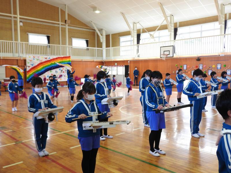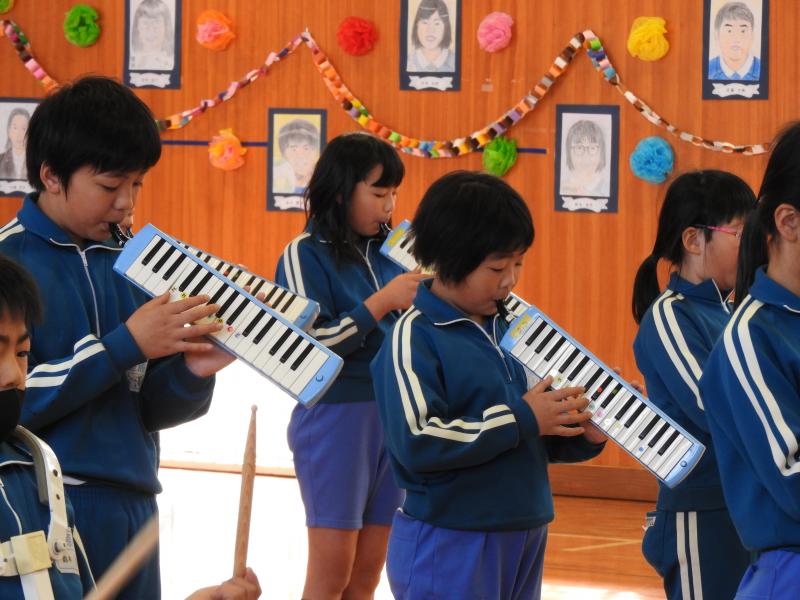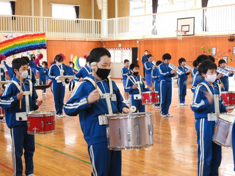鼓笛の移杖式も行われました。2~5年生が一体となって素敵な演奏をしました。