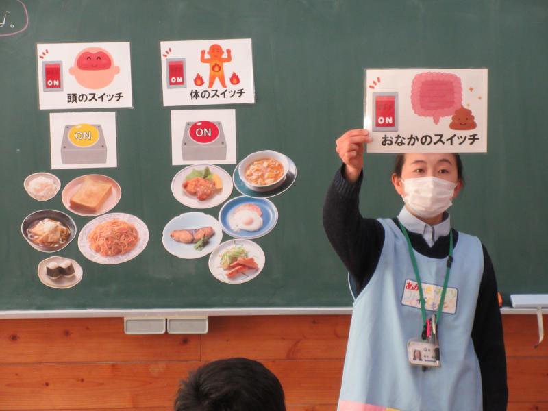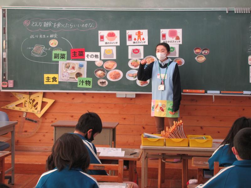 3年生が、塙町栄養士の鈴木さんを招き、「朝食の大切さを知ろう」の食育の学習をしました。ねらいは「健康な生活を送るためには、1日のはじめに食べる朝食が大切であること、栄養バランスのとれた朝食にするためには、主食・主菜・副菜・汁物をそろえることを理解させ、実践していこうとする態度を育てる」です。バランスの良い朝食によって、頭のスイッチ・体のスイッチ・おなかのスイッチが入り、一日の生活が健康に送れることを学び、一人ひとり望ましい朝食の献立について考えていました。