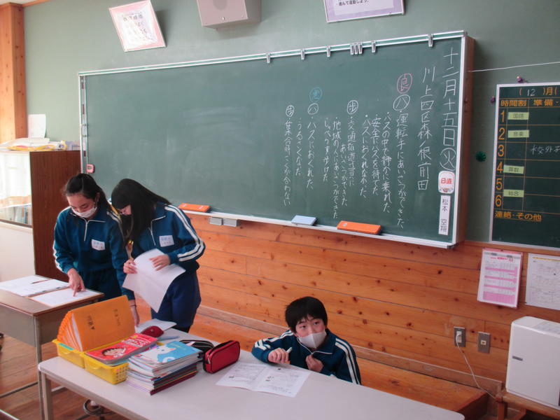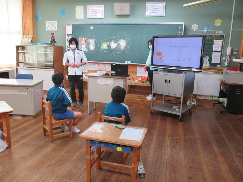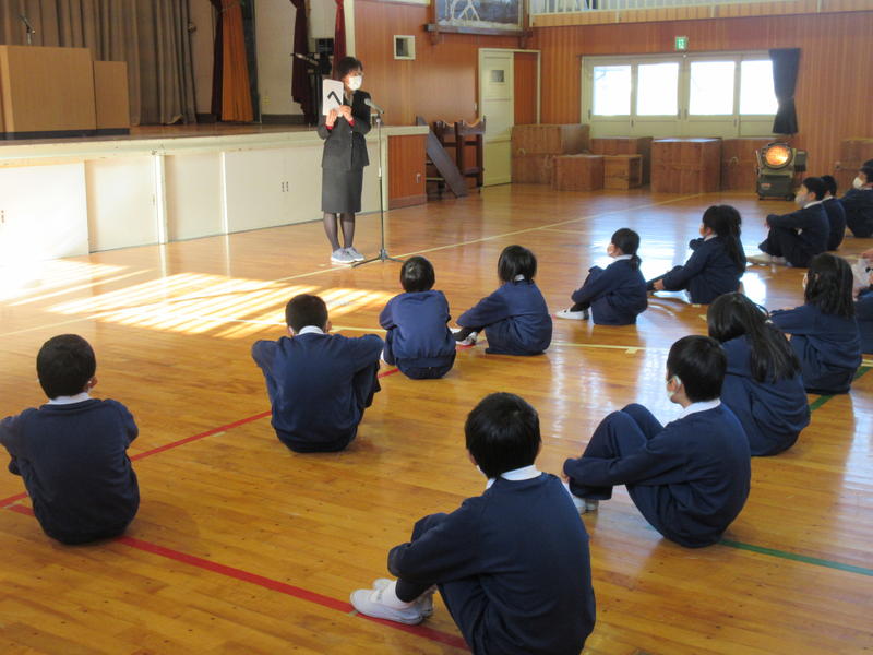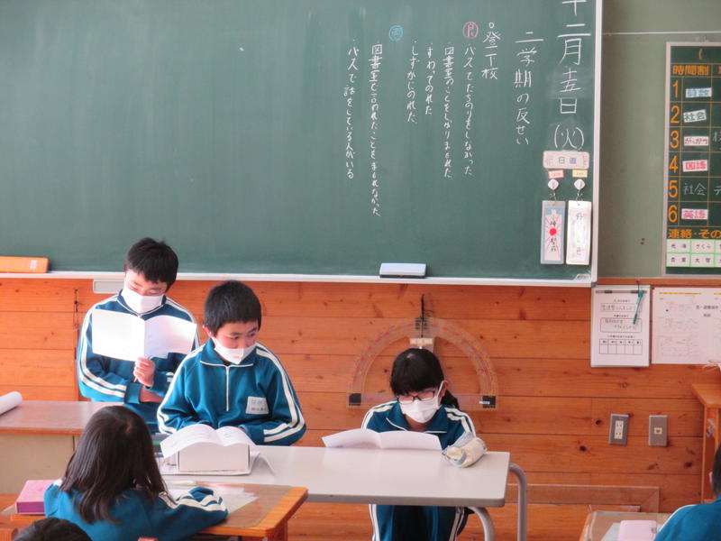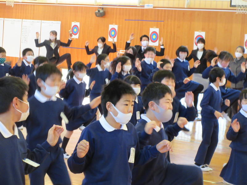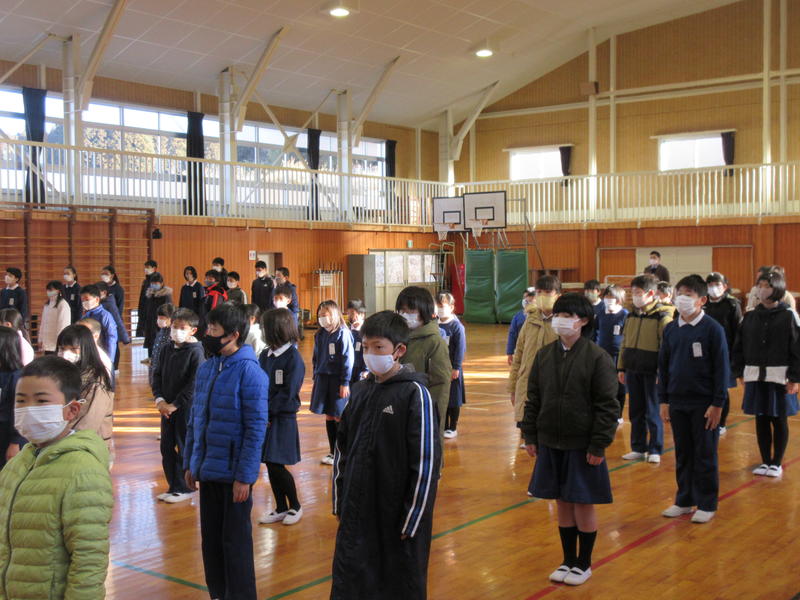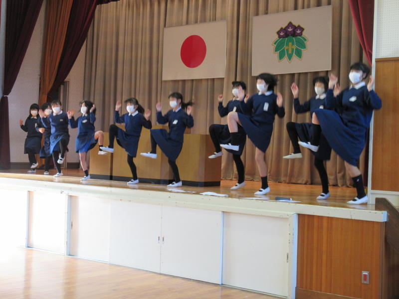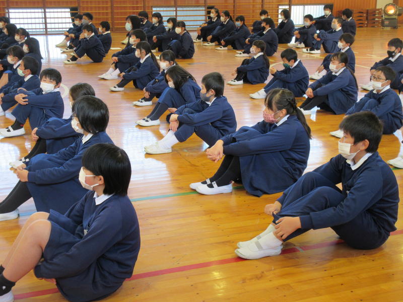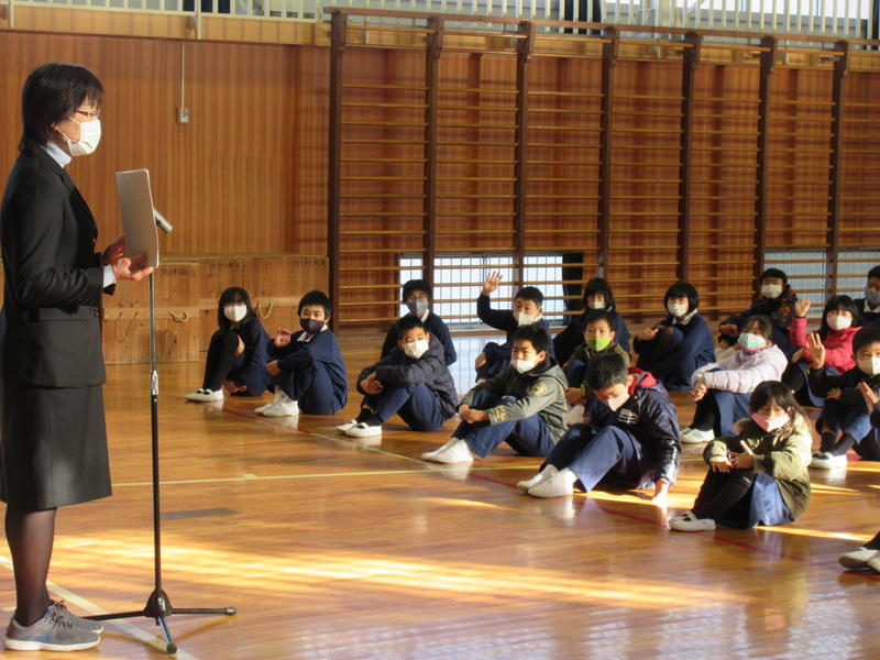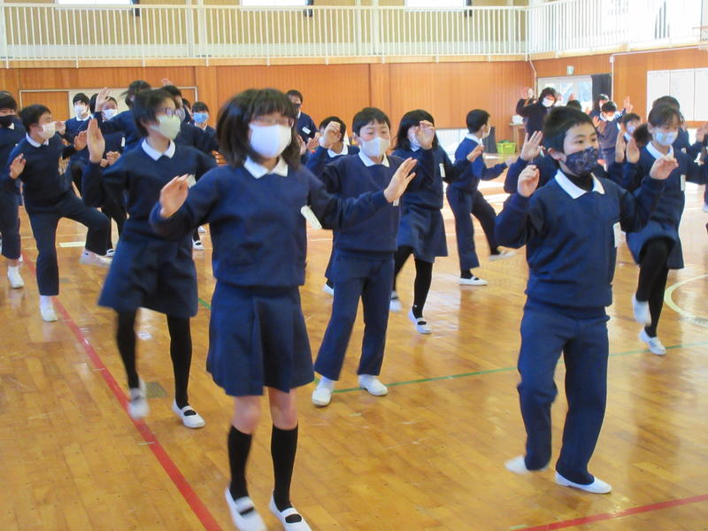 その後、保健給食委員会による「冬休みにやってほしい『くねくね体操とガニガニ体操』」を行いました。体幹の運動神経を動かすことで、全身の運動神経が目覚めて体の動きがスムーズになるということです。1日5分、好きな音楽に合わせてやってみましょう!