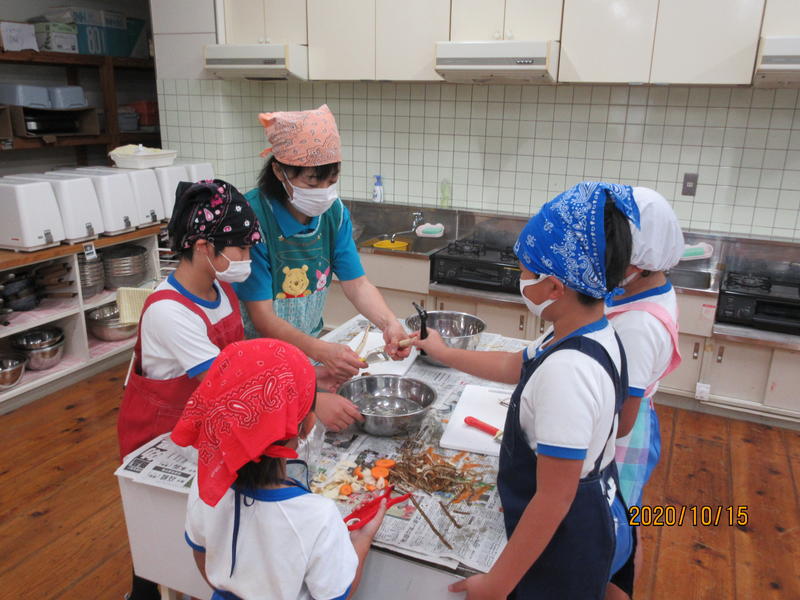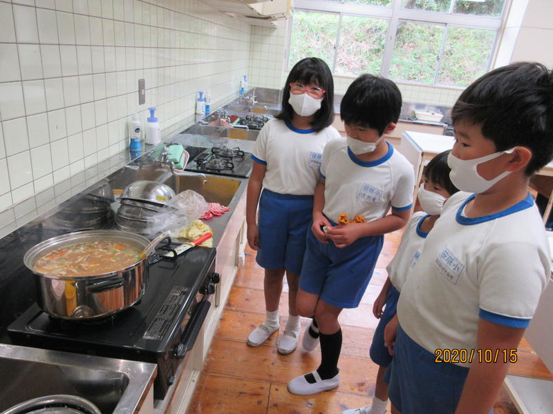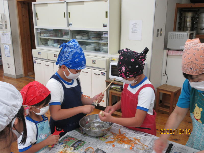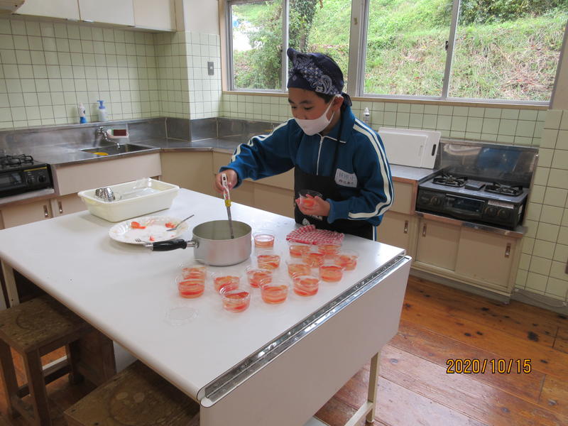 ひだまり学級とかがやき学級が、調理実習による交流会を行いました。ひだまり学級のみんなで、豚汁を作りました。ピューラーでジャガイモの皮をむいたり、包丁で人参を切ったりして野菜を準備しました。どの工程も友達と役割を確認し協力しながら調理を進めました。かがやき学級では、カップゼリーを作りました。液状ゼリーをカップに流し込むとき慎重を期しましたが、上手にできました。自分たちで作った料理は一段とおいしかったです。とても楽しい交流会でした。