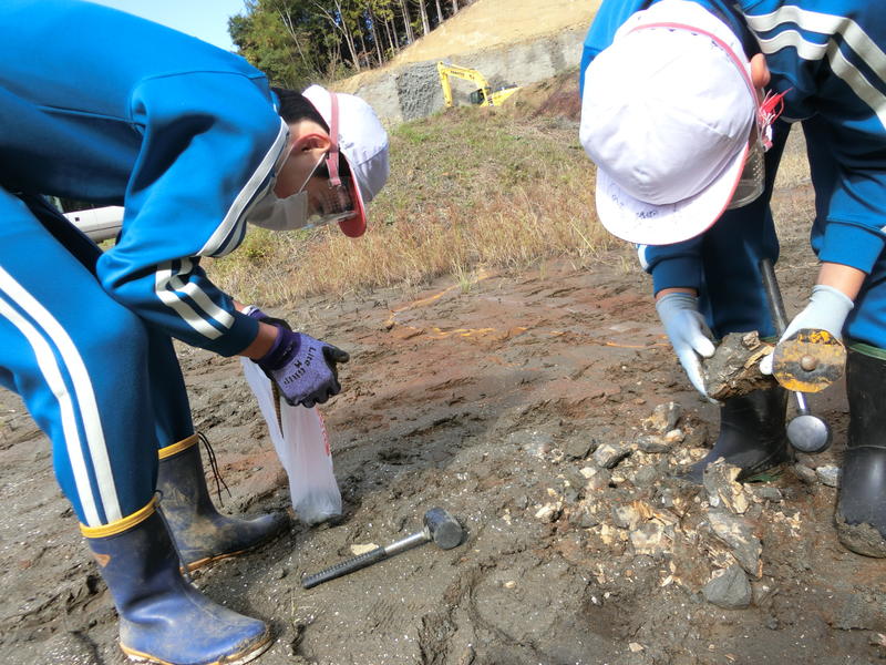 6年生が理科の学習で、貝化石の発掘に挑戦しました。町内の西河内地区には、貝化石が発掘できる土地があります。今回、藤田鉱業様のご協力により、体験することができました。「サメの歯の化石も発掘されたことがある」ということを聞き、誰よりも早く見つけ出そうとあちらこちら発掘してみましたが、今回は、貝化石をたくさん発掘し、学校に持ち帰りました。この体験を通して、標高約200Mの塙町に貝化石が発掘できることに驚き、大昔この地が海底であったことを実感すると共に、学習してきたことをしっかり振り返ることができました。
