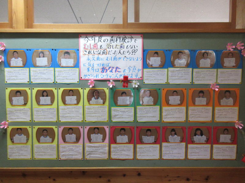 また、今年度、むし歯がない『きれいな歯』のお友達を紹介しています。紹介されたほとんどのお友達が、「きちんと歯磨きをしている」と答えています。『きれいな歯』の秘訣はやはりこまめな歯磨きですね。食べたら歯を磨く習慣を身につけていきましょう。