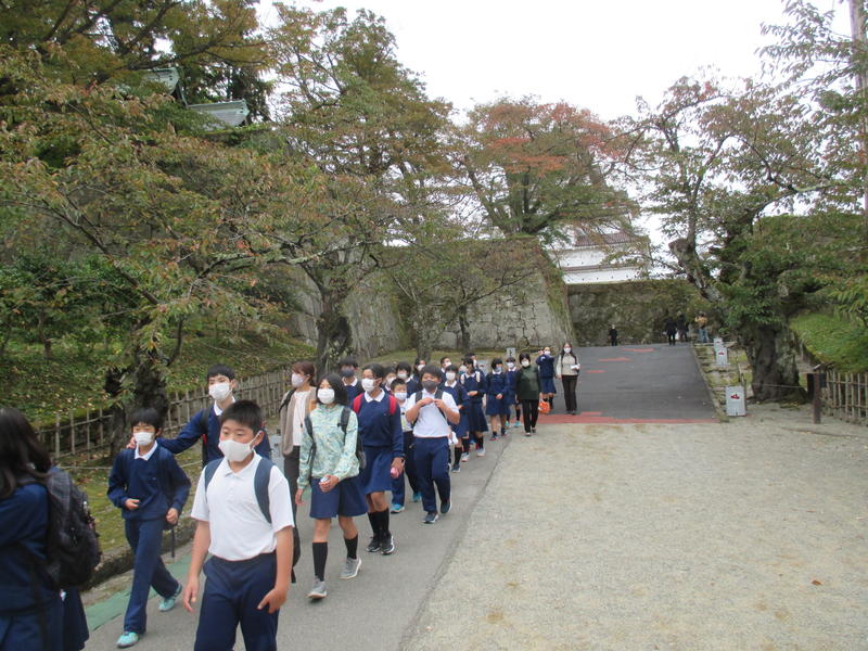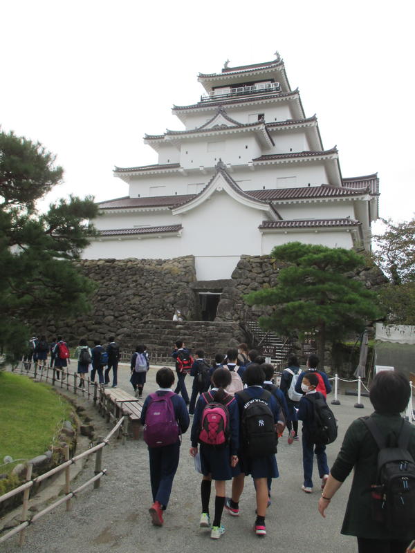 会津若松市方面へ行ってきました。日新館、福島県立博物館、鶴ヶ城、飯盛山を巡りました。日新館では『什のおきて』について知り、博物館では『発掘物』についてメモをとる姿がありました。鶴ヶ城では、お城の雄大さに心を打たれ、飯盛山では、白虎隊について学びました。昼食は、郷土料理『わっぱめし』をいただきました。数多くの歴史や会津文化に触れ、思い思いの修学旅行を楽しむことができました。