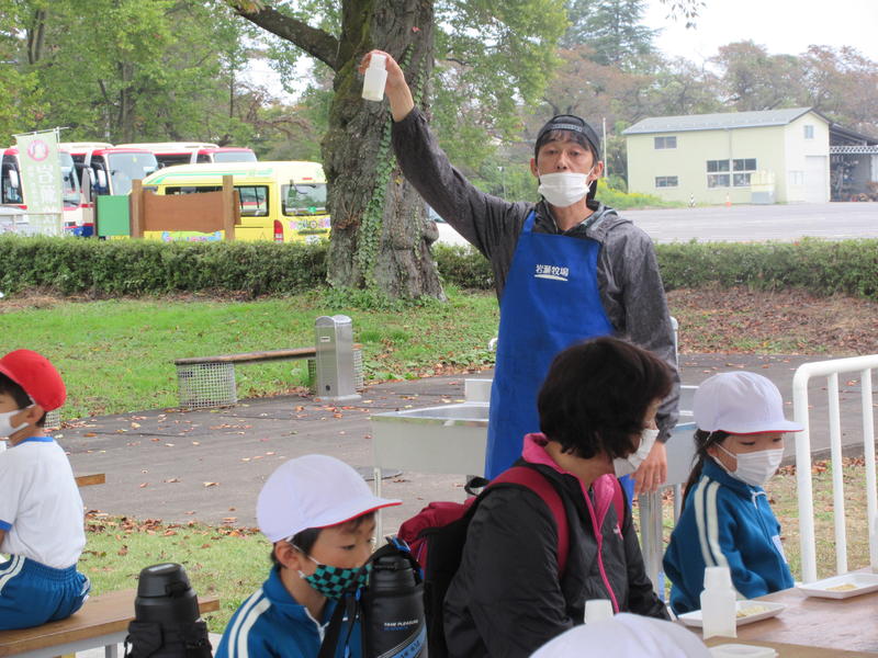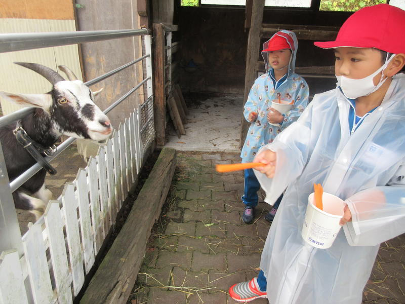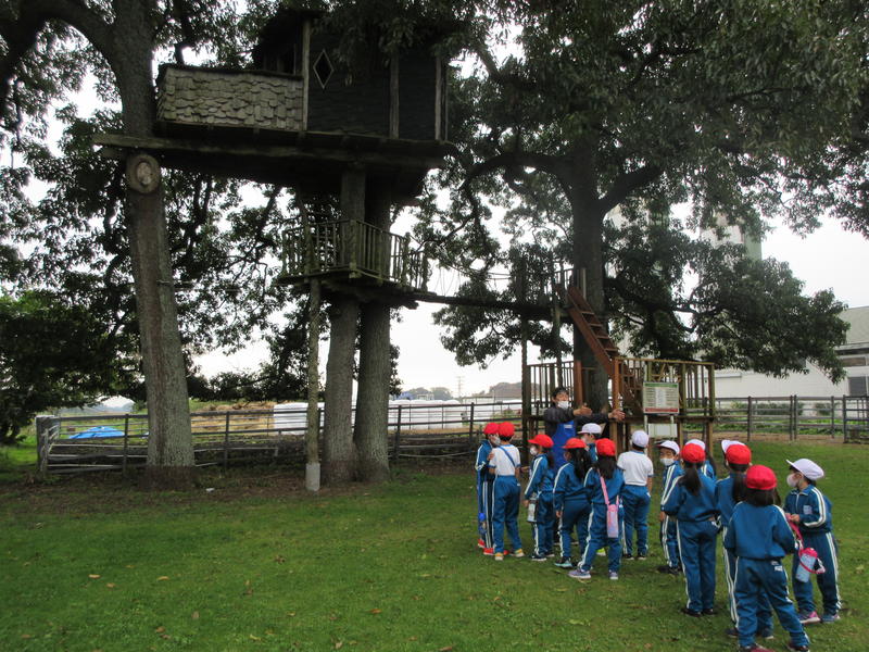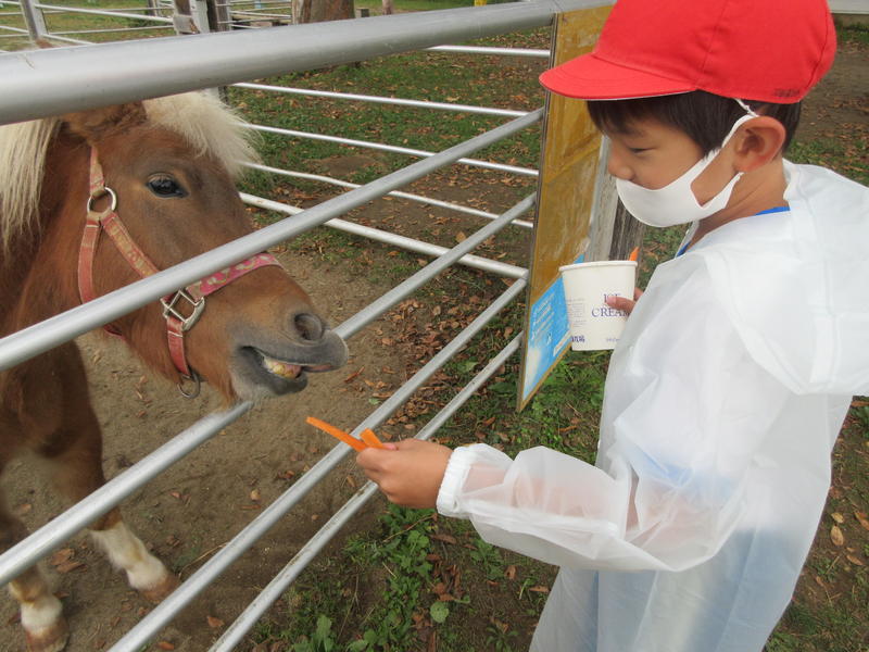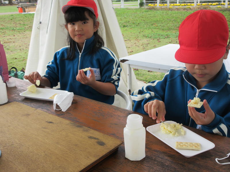 2020年10月22日 10時50分岩瀬牧場に行ってきました。小動物と触れ合ったり、馬ややぎにえさをあげたりしました。また、バターづくりにも挑戦し、液体からバター状にするのに、瓶を約15分一生懸命振りました。できたバターをクラッカーにのせて食べました。ちょっと苦労して作ったバターは、一段とおいしかったです。ツリーハウスを探検したり、野原を思いっきり駆け回ったりして、とても楽しい一日を過ごしました。