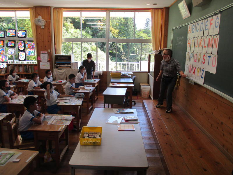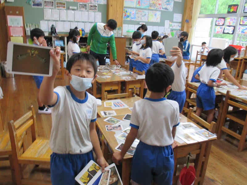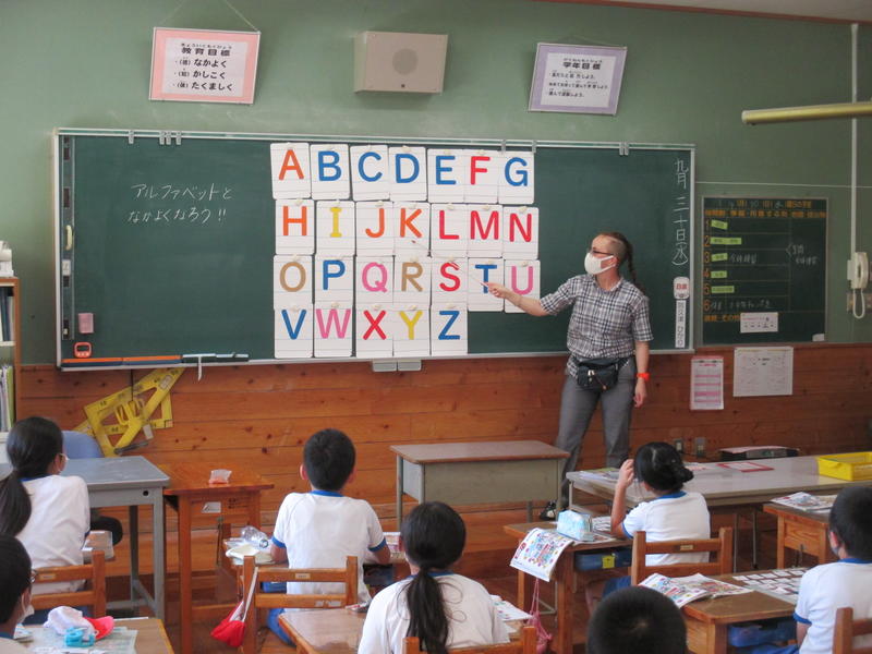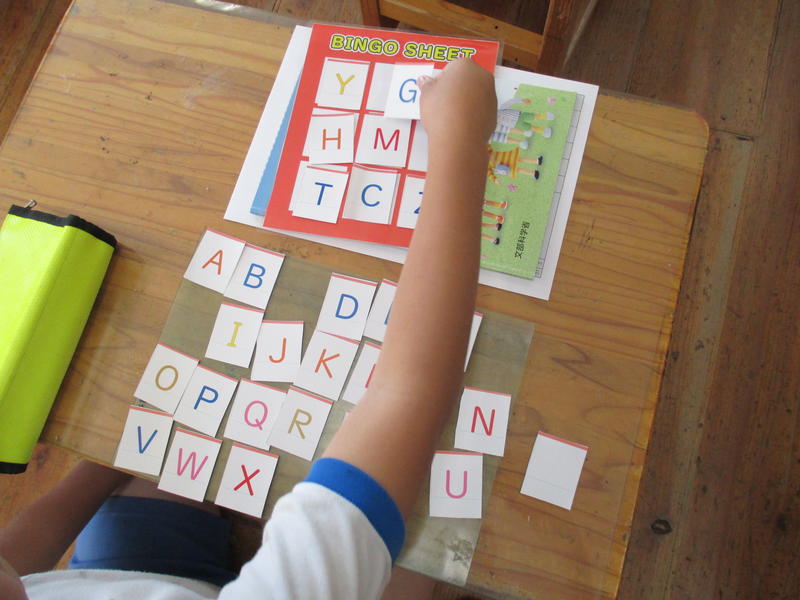 ALTの先生と「アルファベット」の学習をしました。ALTの先生の発音をよく聞いてアルファベットを唱えたり、歌に合わせてアルファベットの配列や形を覚えたりしました。その後、好きなアルファベットを9つ選んでビンゴカードを作り、授業後半は「アルファベットビンゴゲーム」で盛り上がりました。