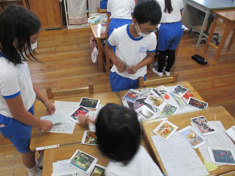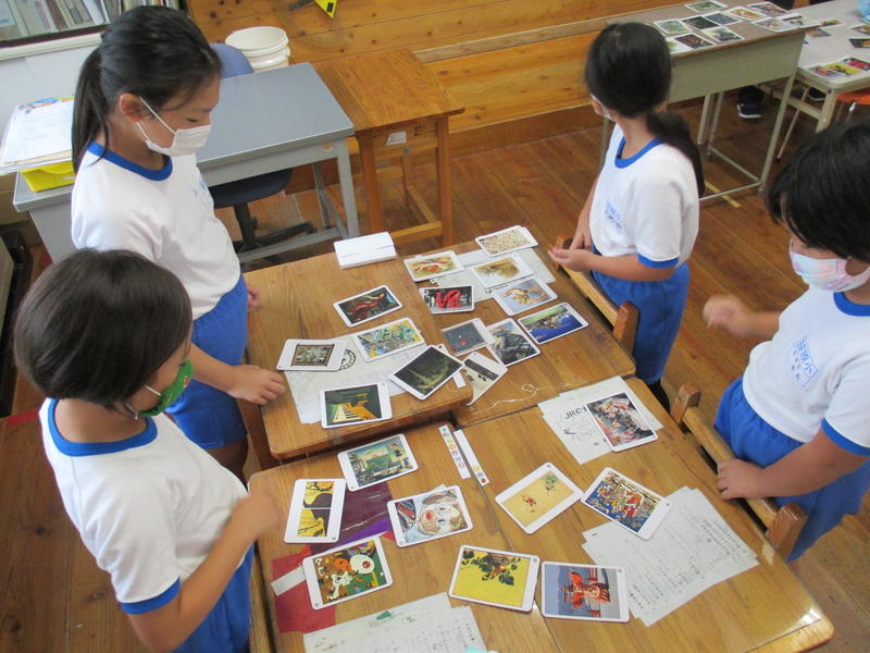 3年生が、図画工作科の鑑賞の学習をしました。鑑賞カードを使ったカルタ遊びを通して、有名な美術作品に親しみました。題名から連想した美術作品(鑑賞カード)を合わせるのに少し戸惑ったところもありましたが、みんなで楽しみながら学習しました。