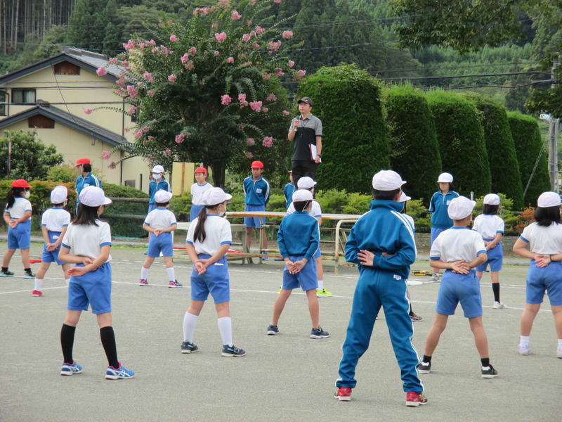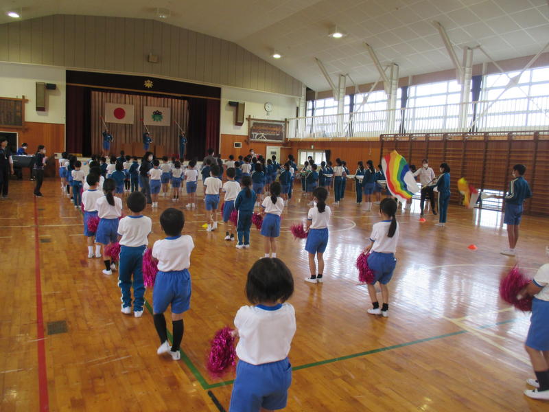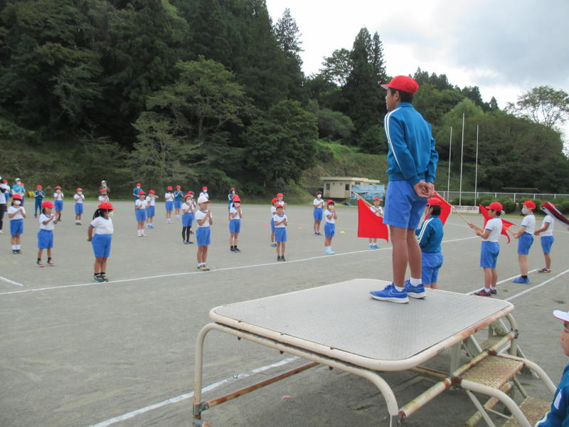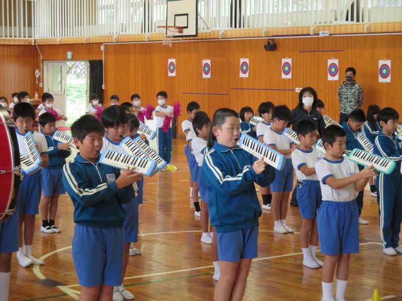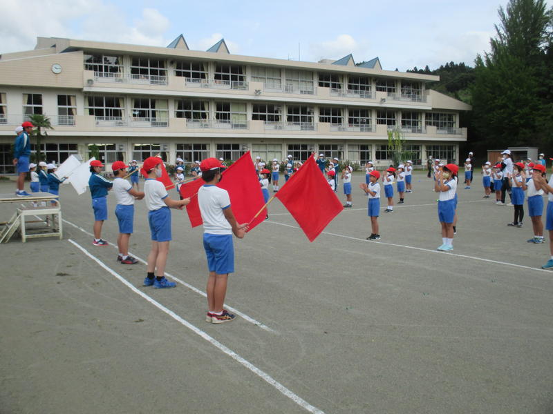 運動会の紅白チームが決定し、初めて全校生がそろって応援合戦の練習をしました。それぞれの応援団長を中心に校庭に大きな声を響かせていました。運動会では、頑張っている友達にたくさんの声援を送りましょう。