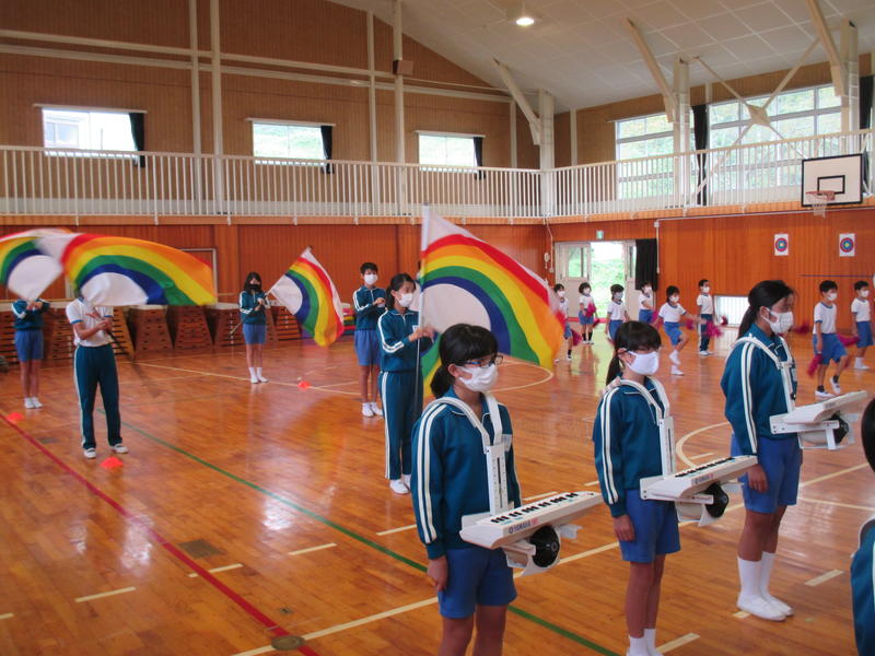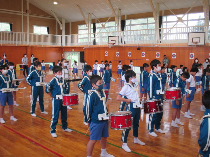 第1回目の鼓笛全体練習をしました。今まで各パートに分かれて練習をしてきましたが、今日初めて全体で音を合わせてみました。あいにくの天気で体育館での練習になりましたが、一人ひとり真剣な態度で臨みました。次回は、校庭で隊列を移動・変化させながら演奏する予定です。