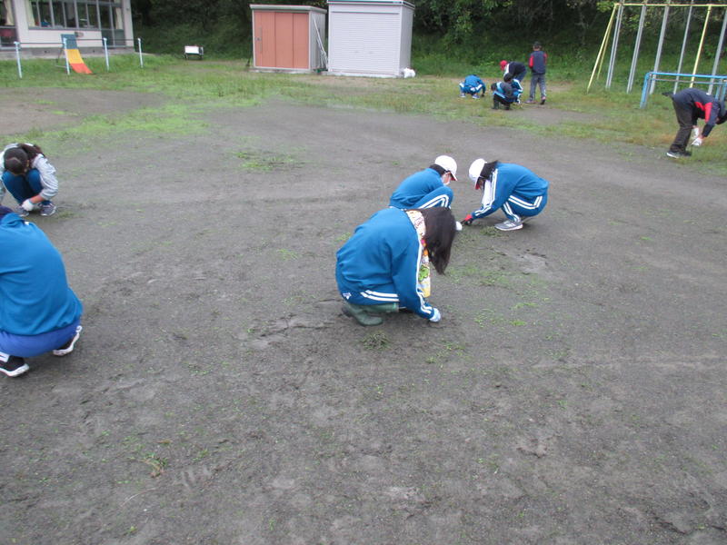 早朝よりご協力いただきましてありがとうございました。きれいな環境の中で、学校生活が送れます。運動会当日も素晴らしい環境の中で、気持ちよく競技演技ができそうです。また、高学年の児童の皆さん、お疲れさまでした。明日から、清々しい気持ちで生活できますね。ありがとう。