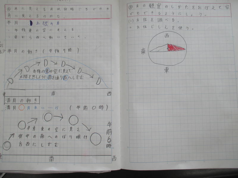 さて、満月は、どの方角に見えるのかな。位置はどのように変化するのかな。