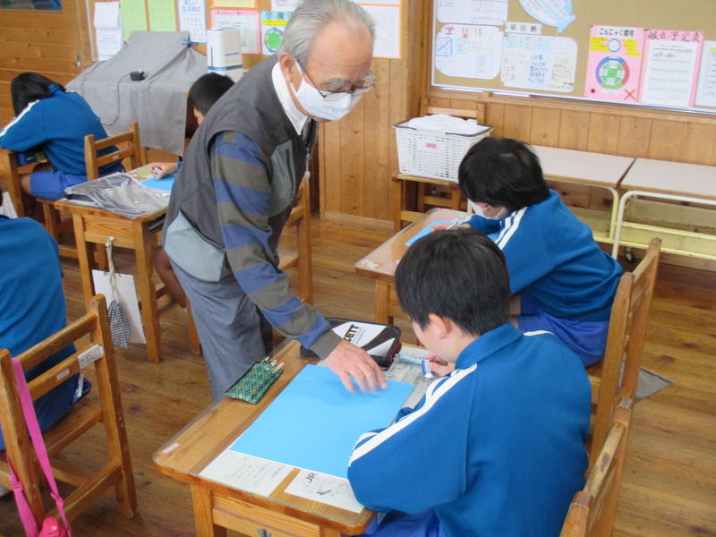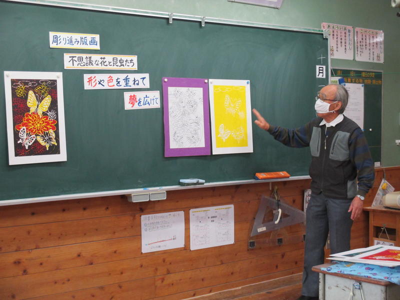 外部講師をお招きして、図画工作科『木版画』の学習をしました。「彫り進み版画・不思議な花と昆虫たち・形や色を重ねて・夢を広げて」をテーマに、まずは版へ下書きをしました。下書きを描くときのポイントを教えていただきました。今後、先生に版画の美しさや面白さを教わりながら作品づくりを楽しみたいと思います。