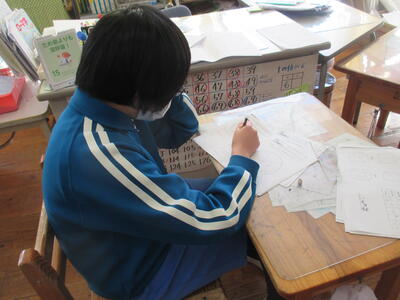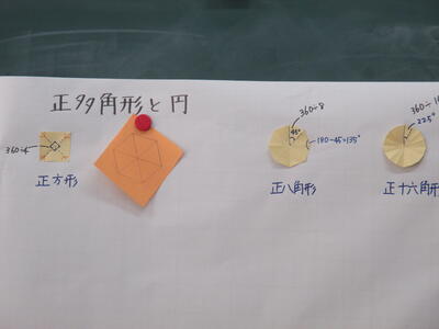 折り紙で多角形を作り、視覚的にとらえながら、形や角の大きさなどを覚えようと頑張っています。