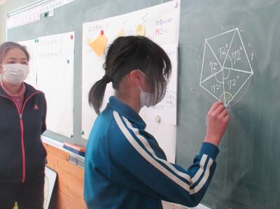 また、三角形の内角の和は180度ということを基にして、五角形の内角について考えることもできました。