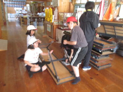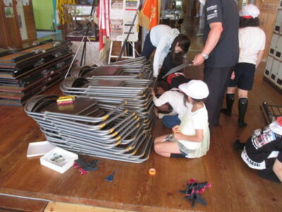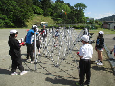 その他の子どもたちは、テントや椅子の準備、看板立てなどを行いました。