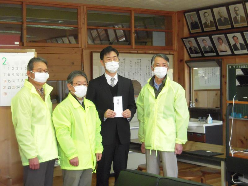 交通安全協会笹原支部より高圧洗浄機をいただきました。支部役員の福多さん、神永さん、鈴木さんが来校されました。かねてから支部より「学校に必要なものがあれば協力します」と温かい声をいただいており、今回、操作しやすい高圧洗浄機と思い、ご相談させていただきました。昇降口周辺の凍結時や環境整備の際にぜひ使用させていただきます。地域の方々のご厚意に感謝いたします。