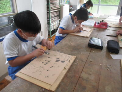 2024年10月30日 12時35分3・4年生の図工では版画の学習で取り組み、これまで下絵を描いてきました。