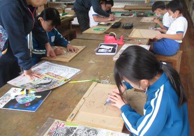 どちらも夢中になって作品作りに取り組んでいました。版画になるのが楽しみです。