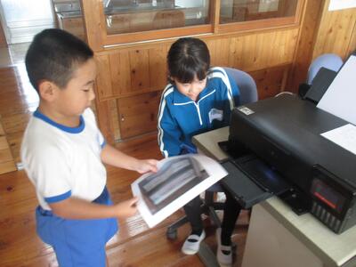見つけたものの特徴などをまとめたメモを見ながら、文章に表したり、写真を印刷したりして今週末の授業参観での発表に向けて準備しました。